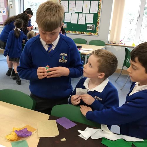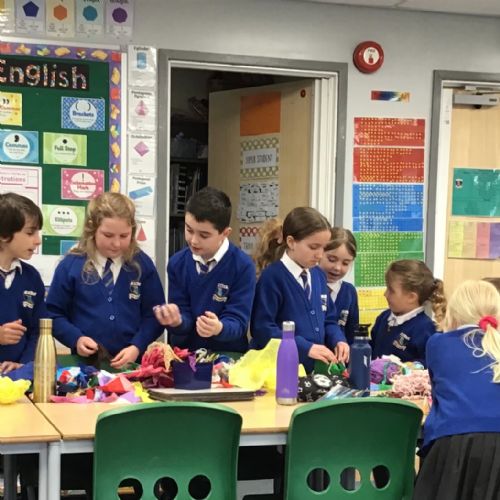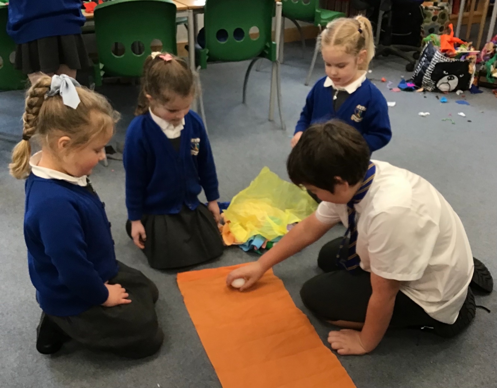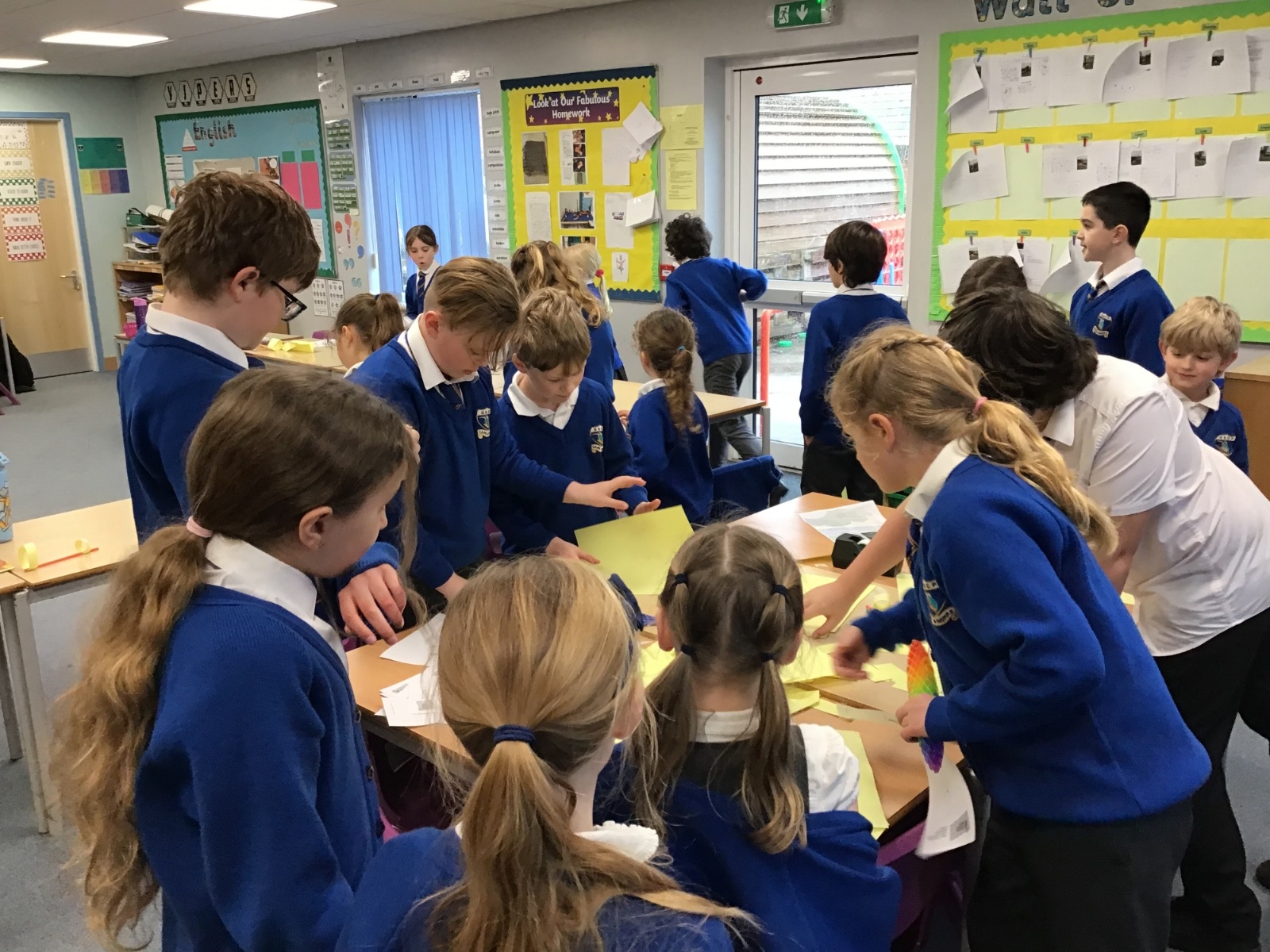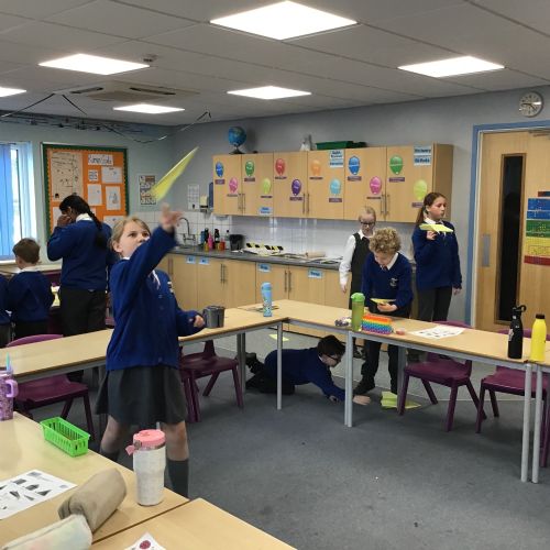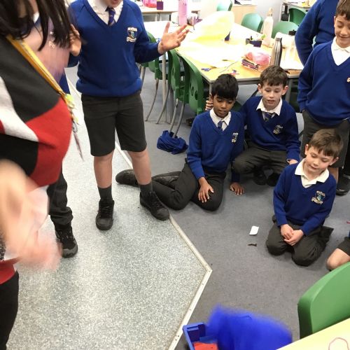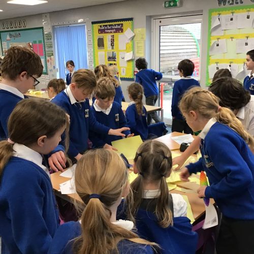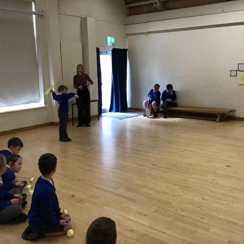 The children split into their houses for the morning to answer four questions.
