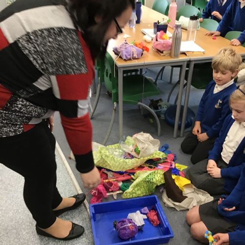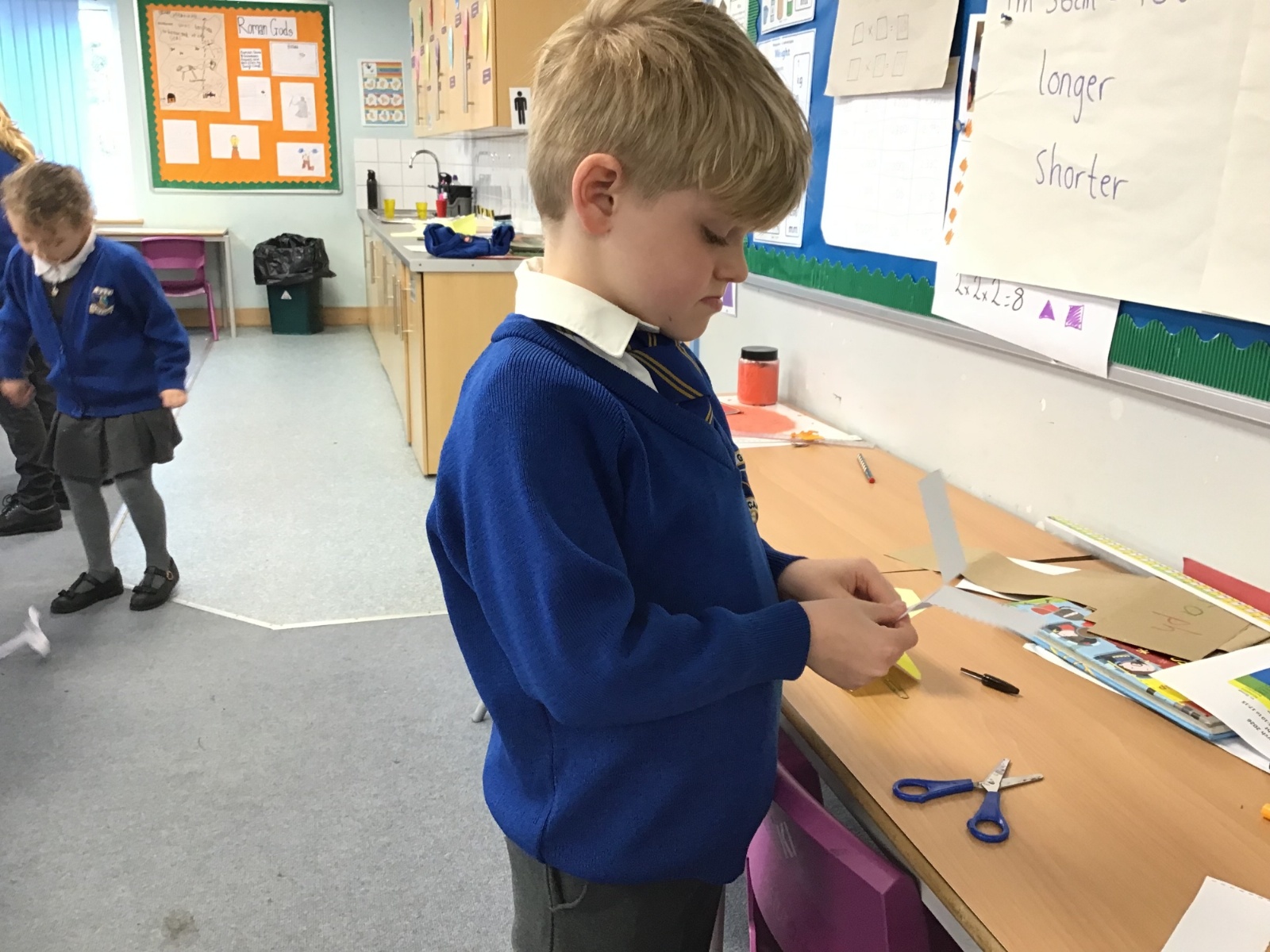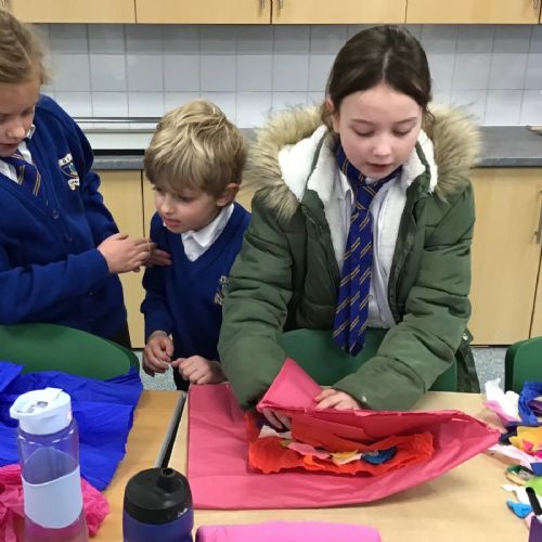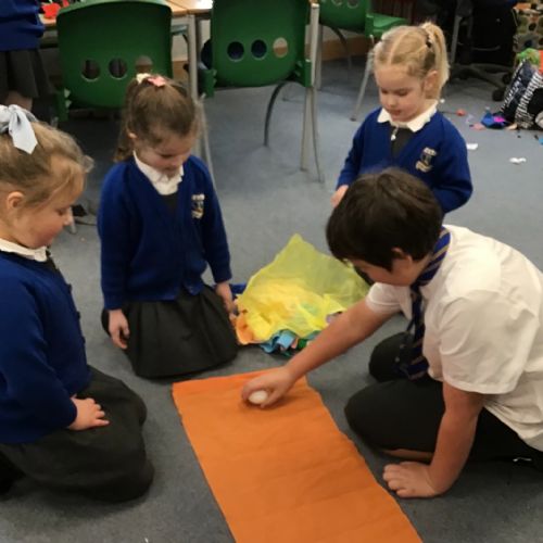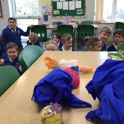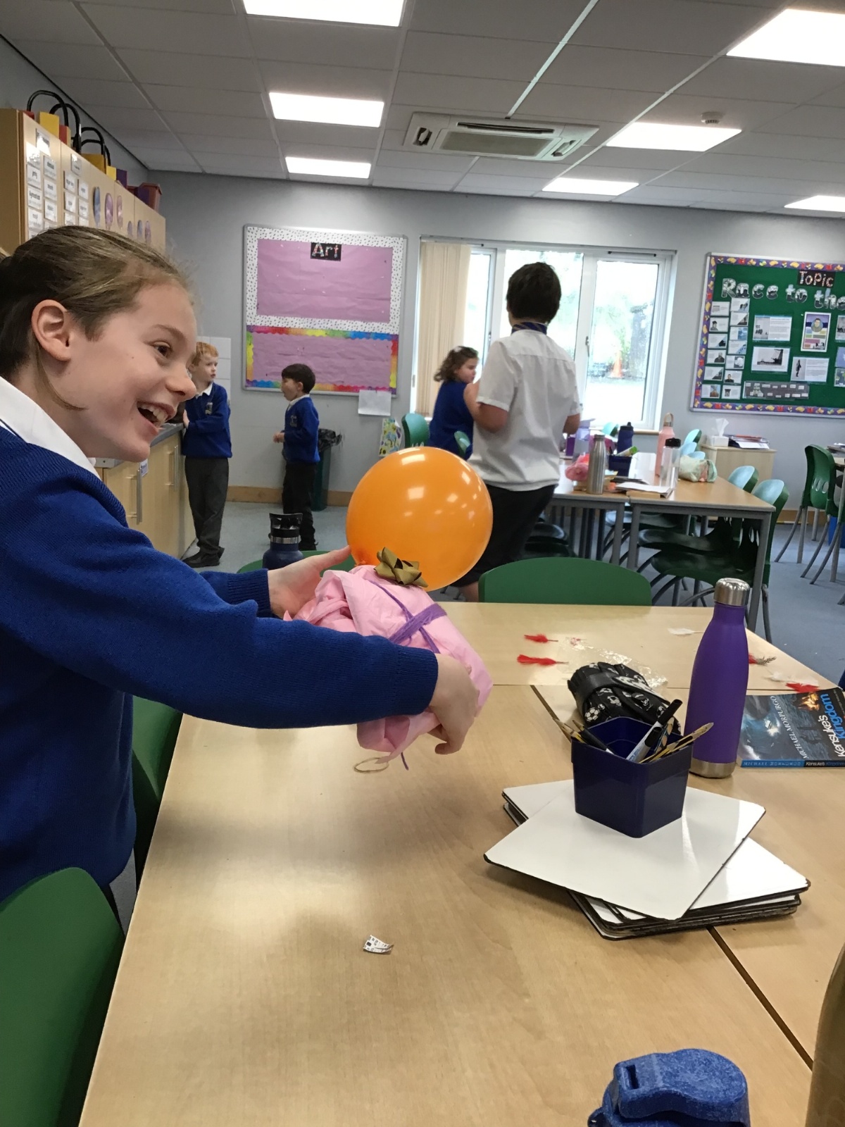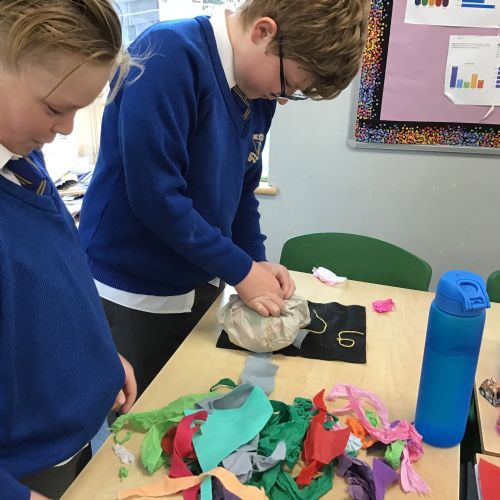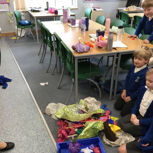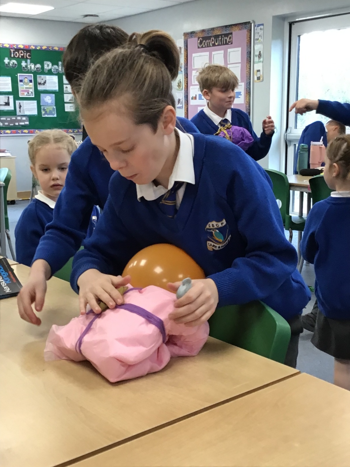 The children split into their houses for the morning to answer four questions.