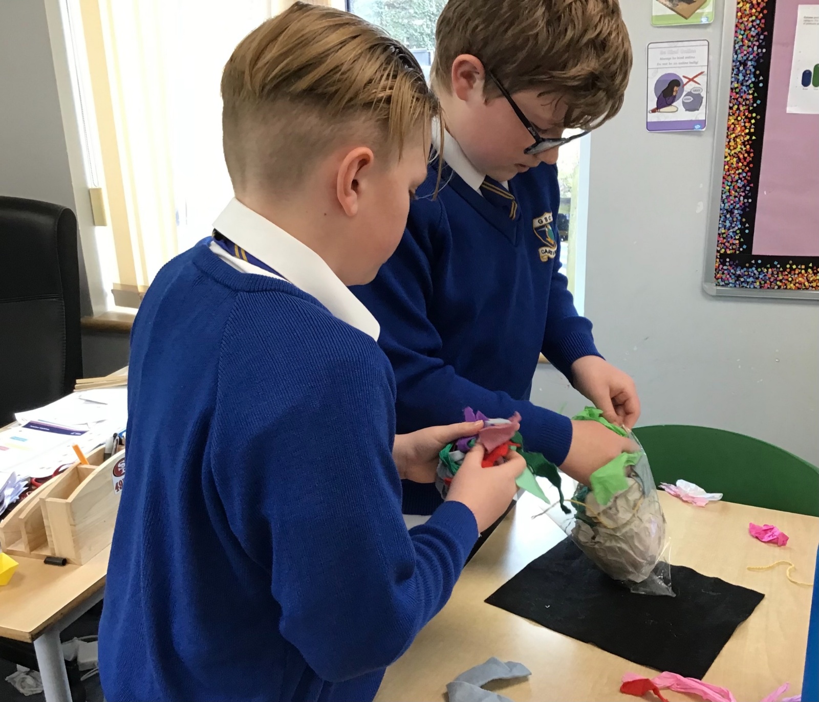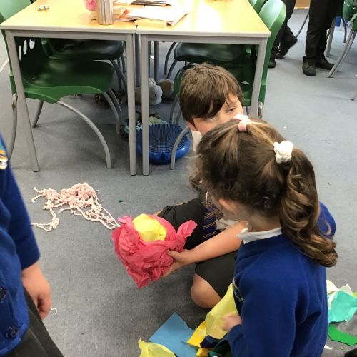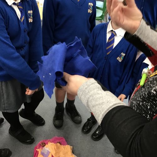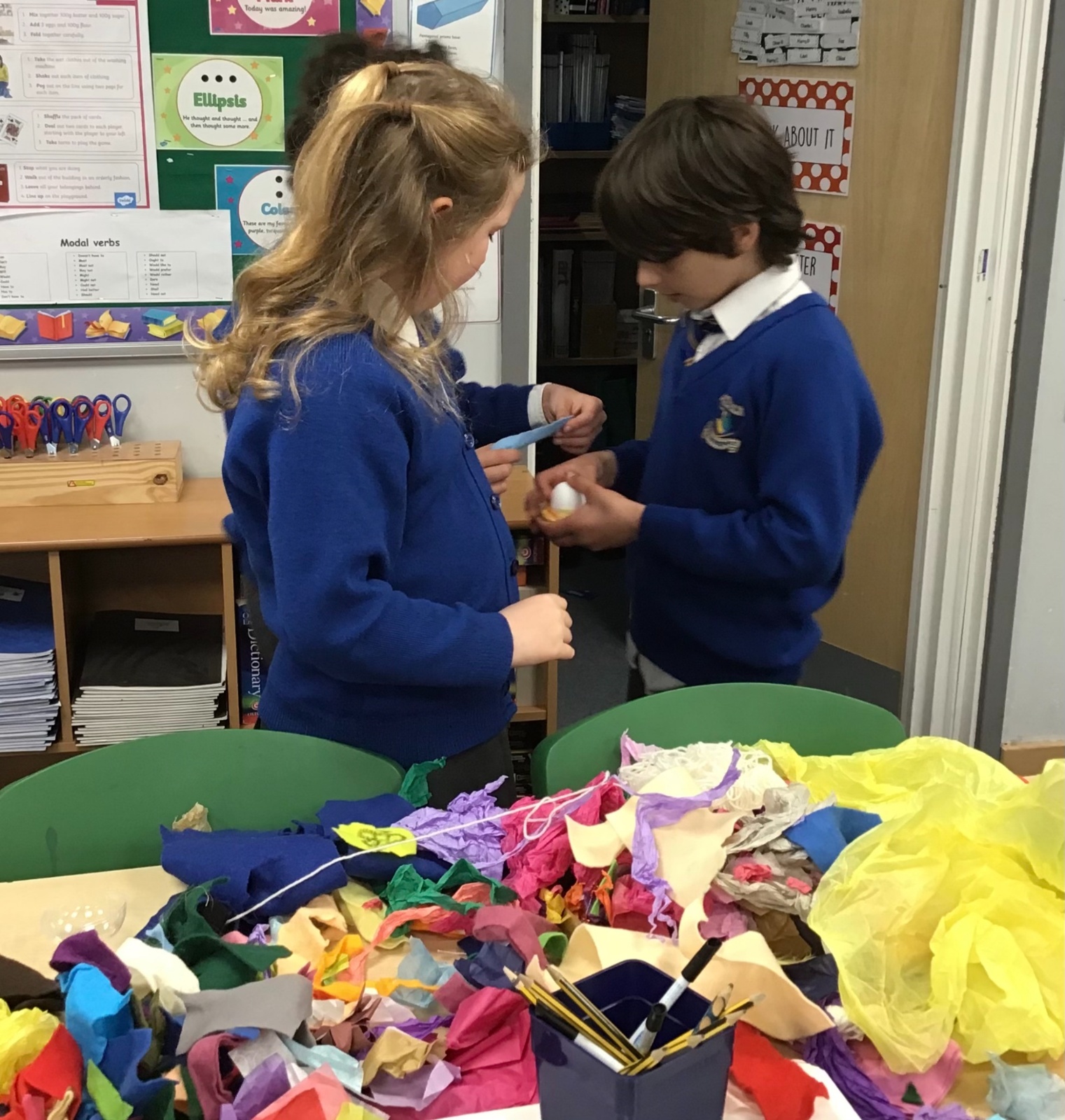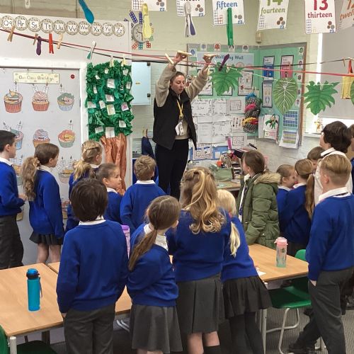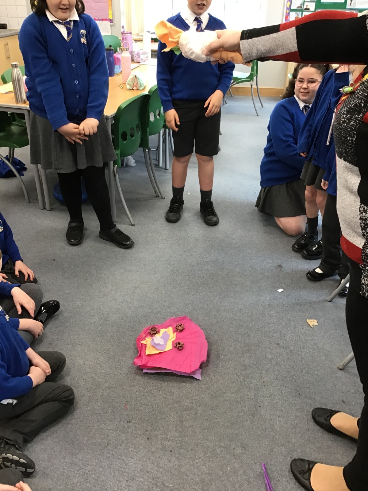 The children split into their houses for the morning to answer four questions.