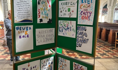 The children's work is up and ready to be viewed at the church in Finchgfield. It will be up until next weekend.